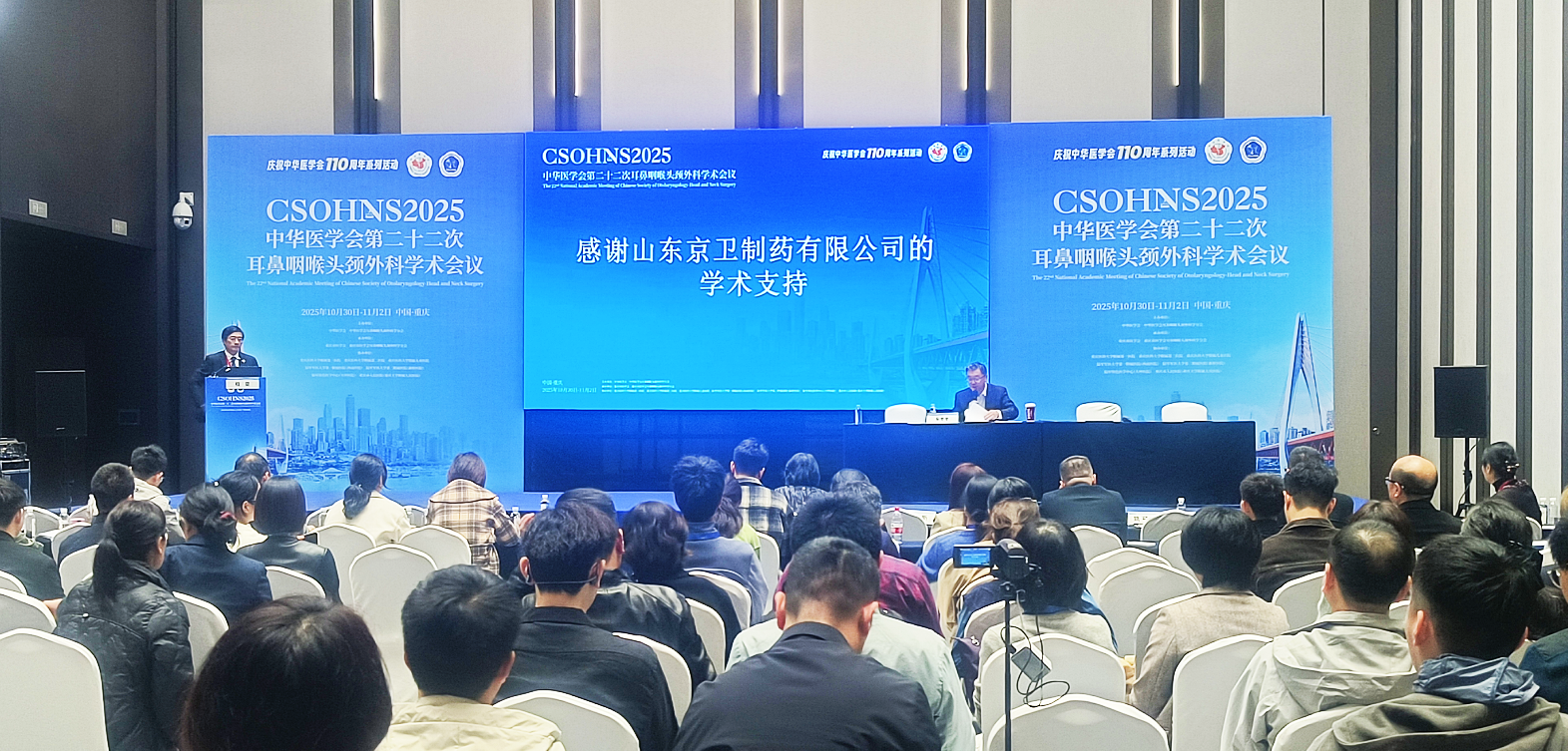 2025 年 10 月 30 日至 11 月 2 日,中华医学会第二十二次耳鼻咽喉头颈外科学术会议在重庆隆重举行。作为我国耳鼻咽喉头颈外科学领域层次最高、影响力最大的全国性学术盛会,大会集中展示了学科最新进展与科研成果,推动临床诊疗与科研创新深度融合,吸引了全国各地的专家学者踊跃参与。山东京卫制药有限公司作为行业内的重要力量,积极深度参与此次盛会,以实际行动助力学科发展,为推动学科领域交流与发展贡献力量。